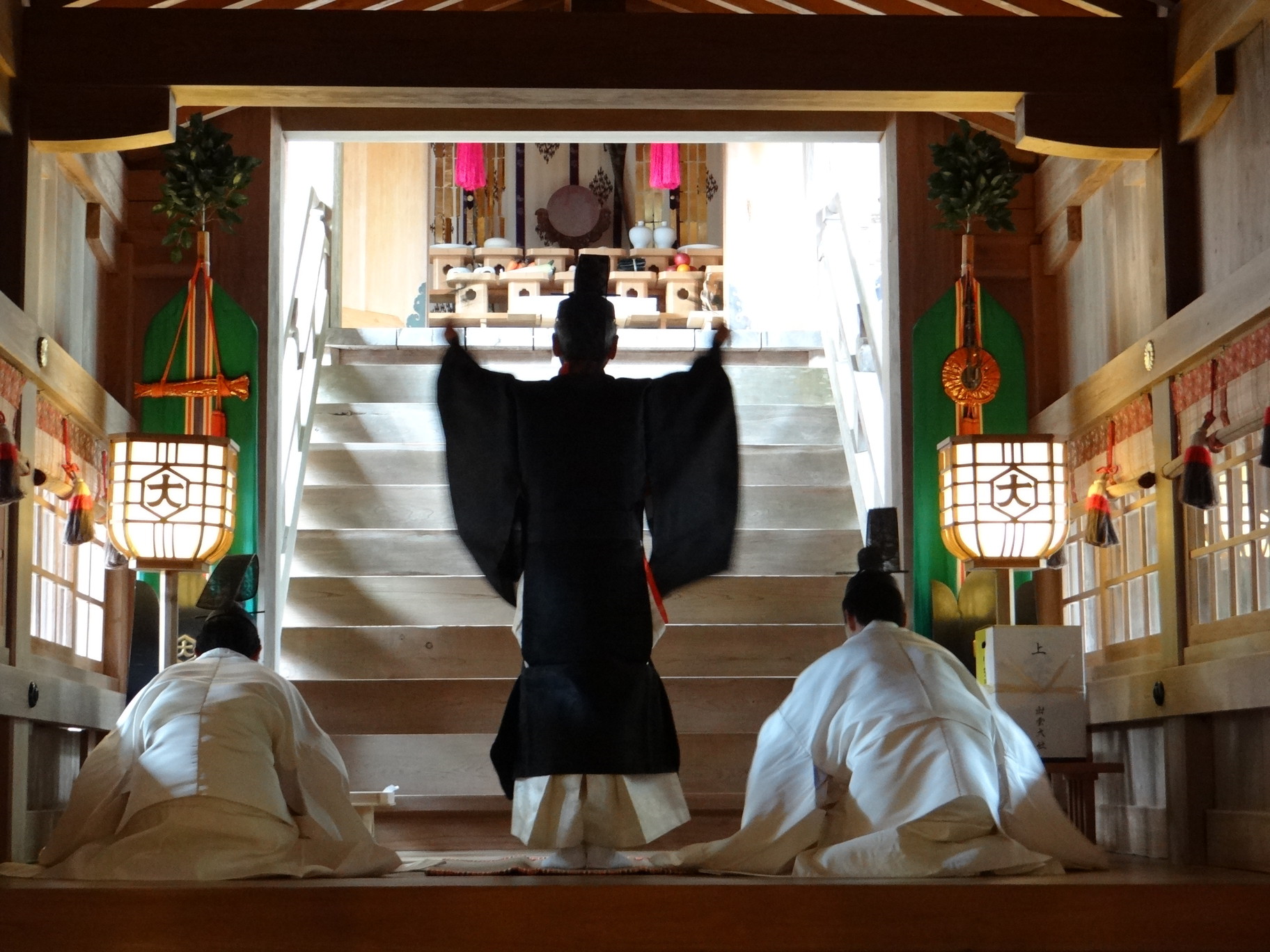 「百番の舞」が終わると國造が退出し、神事が終わります。
