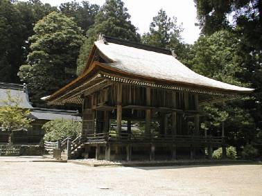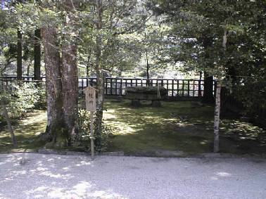 ここは、お祭を奉仕する神職などが始めに お祓いをする所です。 奥の中央に石の祭壇があり、ここに祓いの 神様をお呼びして祓いの儀が執り行われます。 周りに注連縄が張り廻らされ中は地面一面苔で 覆われ、そこに石の祭壇が組まれており、とても 神聖で神秘的な場所です。 昭和61年に修造されました。 |
