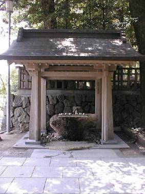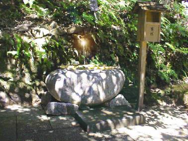 荒神社の横に御神山から流れ出している御神水 です。 昔から神饌や、斎館で使う御水として使うために 近くから湧き出たばかりの清水を引いてきたもの であります。 その御水を参拝された方々もお頂きできますよう に清美してあります。 どうぞお頂き下さいませ。 |