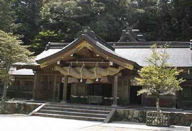 萱葺きの屋根に四方の壁は檜の皮で覆われ、 竹でできた縁がめぐらされています。 鑚火祭の舞台となる場所であり、燧杵・燧臼が 保管されています。 又、出雲國造の「火継式」に使われます。 この建物は大正4年(1915)に鑚火祭が 熊野大社で行われるようになったことから 翌年氏子により建てられました。 他の神社では見ることの出来ない当社特有 の建物であります。 現在の物は平成3年に奉新建されたもの です。 |