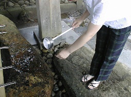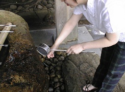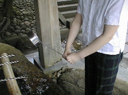 | @ 先ず左手を洗います | A 次に柄杓を持ち替え右手を洗い ます |