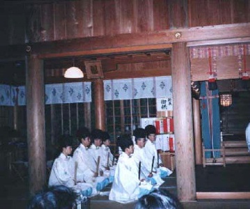 | 大祓・除夜祭の様子 | 初神楽を待つ参拝者 |