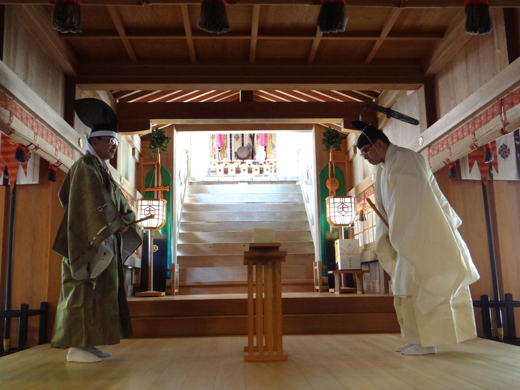 「百番の舞」が終わると國造が退出し、神事が終わります。